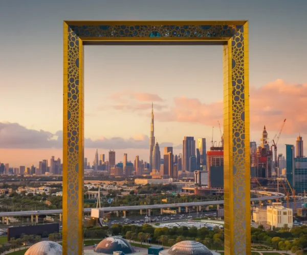 he Dubai Frame is a stunning landmark that visually represents the city’s past and future. Guests enjoy immersive galleries, a museum of Dubai’s history, and a glass skywalk with breathtaking city views.