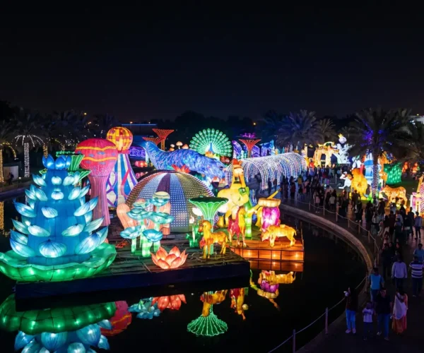 Dubai Garden Glow is a beautifully illuminated theme park filled with glowing sculptures, LED artworks, dinosaur animations, and environmental-themed installations. Designed for families and photography lovers, this nighttime wonderland transforms the park into a magical glowing universe.